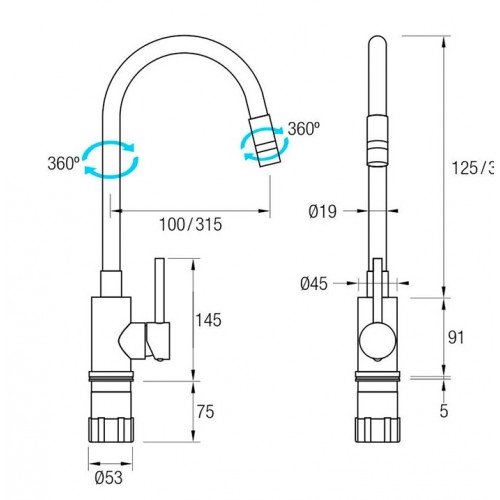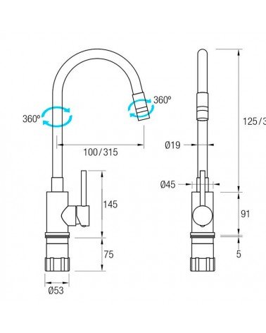 Referencia: 0310ALASKAGrifo de cocinaGrifería MonomandoCaño Flexible Silicona HigiénicaCaño giratorio 360ºAireador de 2 posicionesLatón CromadoCartucho SedalFácil Instalación