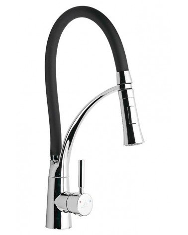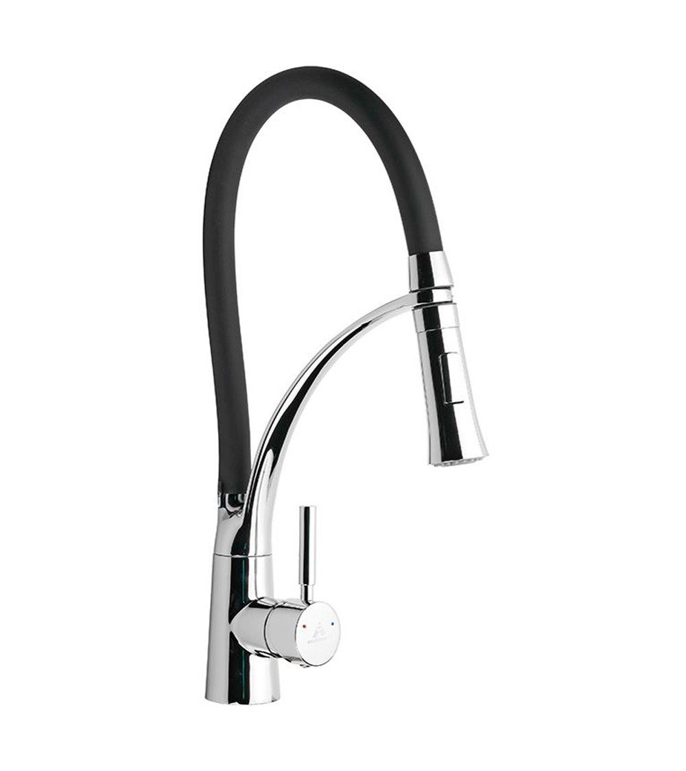 Referencia: 03100NESSYGrifo cocinaGrifería monomandoCaño giratorio 360ºCaño extraíble con pulsadorAireador y filtro Anti-calLatón cromadoCaño flexible Silicona HigiénicaCartucho sedalFácil instalación